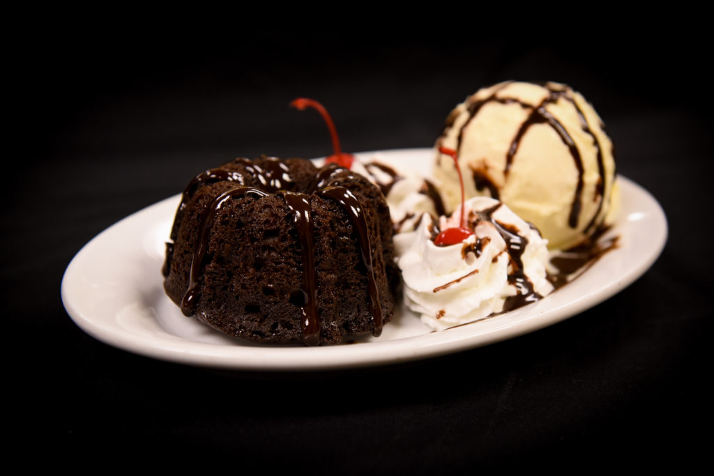 Sinfully sweet and worth every bite!  Spongy chocolate cake brownie drizzled with hot fudge sauce, then served along side whipped cream, ice cream, cherries and another drizzle of hot fudge.  A wonderful end to your meal!