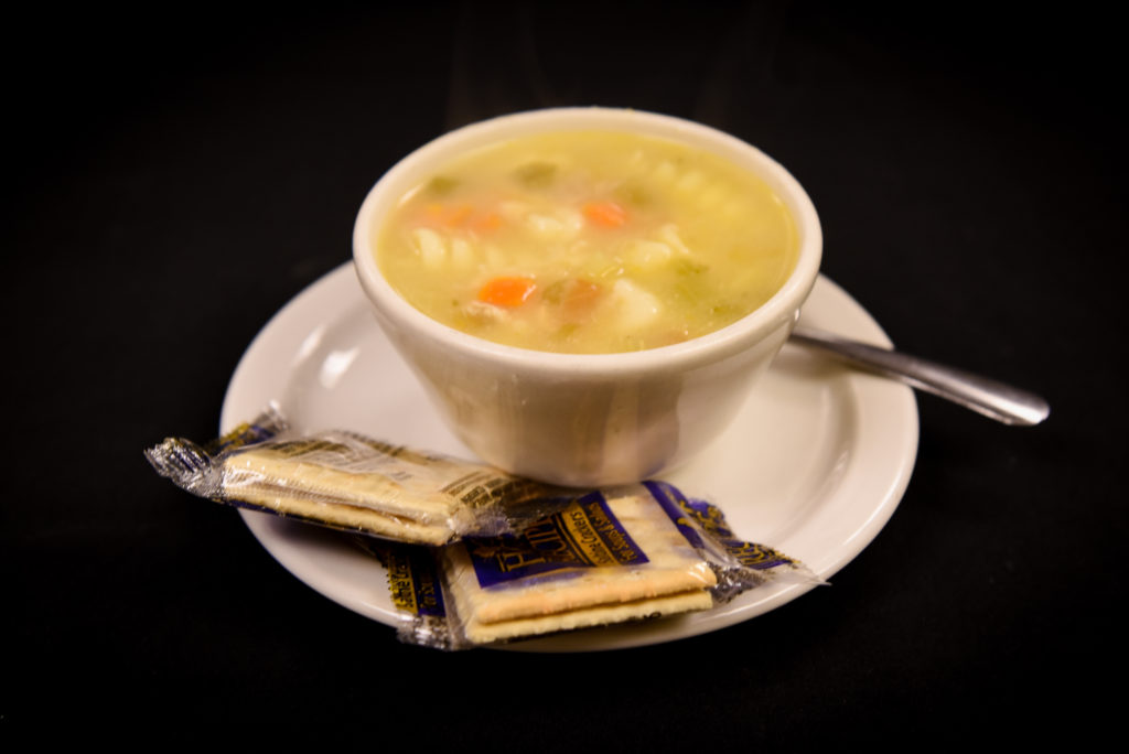 A steaming cup of our freshly homemade soup – ask your server about the daily soup special.